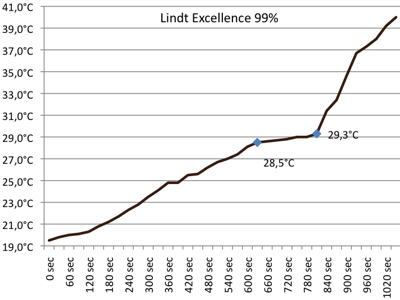 Kaloriemeterkurve flüssiger Vollmilchschokolade |