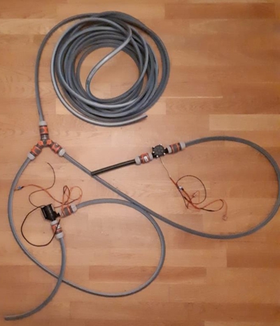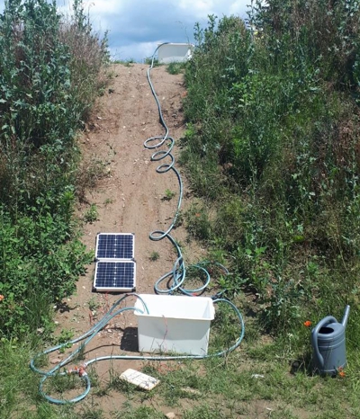 | Das fertige Modell des Pumpspeicherkraftwerkes | Schläuche mit Pumpe und Generator | |||