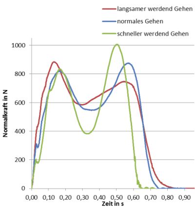 Normalkraft bei unterschiedlichem Gehen |