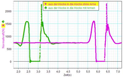 Kraftverlauf beim Strecksprung Hocke - Hocke |