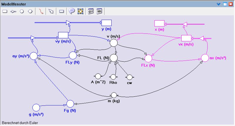 Schiefer Wurf mit Luftreibung bei Modellus 4 |