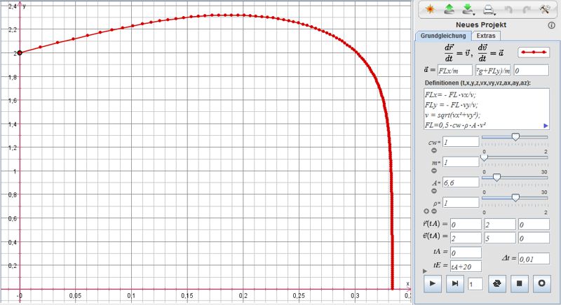 Schiefer Wurf mit Luftreibung bei Coach 6 |