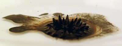 Rosensweig-Instabilitäten am selbst hergestellten Ferrofluid |