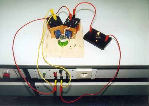 Die Glühlämpchen (6V/ 2,4W) wurden zueinander einmal parallel und einmal in Reihe geschaltet.