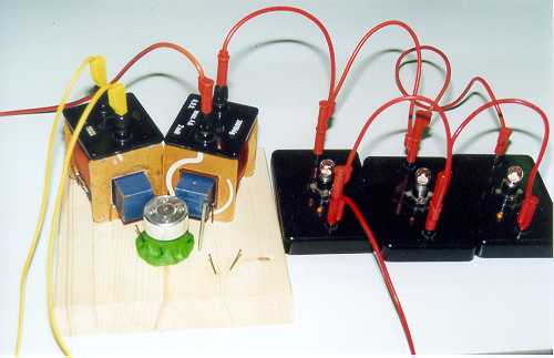 bestimmte Anzahlen von Lämpchen parallel und in Reihe geschalten. Die Umdrehungen