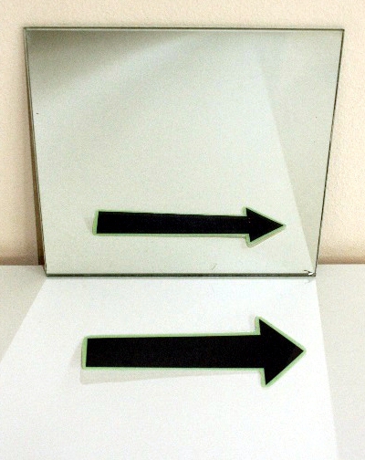 Pfeil vor dem Spiegel: Was vertauscht der Spiegel? |