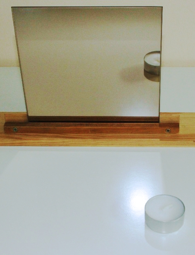 Teelicht vor und hinter dem Spiegel: Wo ist das Spiegelbild? |