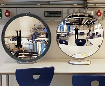 Mauer vor dem Spiegel: Was vertauscht der Spiegel? |
